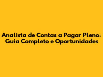 Analista De Contas A Pagar Pleno: Guia Completo E Oportunidades