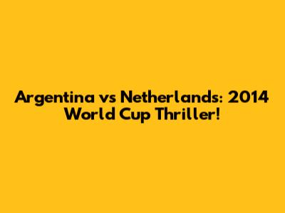 Argentina Vs Netherlands: 2014 World Cup Thriller!