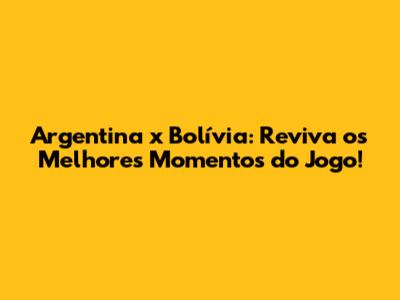 Argentina X Bolívia: Reviva Os Melhores Momentos Do Jogo!