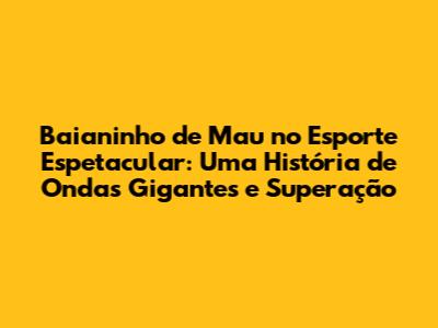 No Esporte Espetacular, a busca de Baianinho de Mau por recordes e a superação de limites foram temas centrais da reportagem. A matéria explorou sua participação em competições de surf de ondas gigantes, mostrando seus melhores momentos e os desafios que ele enfrentou para se destacar no cenário mundial. Acompanhamos sua preparação para eventos importantes, como o WSL Big Wave Tour, e vimos a sua determinação em superar os seus próprios limites e alcançar novos feitos.