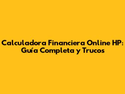 Calculadora Financiera Online HP: Guía Completa Y Trucos