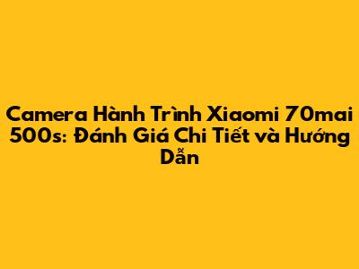 Camera Hành Trình Xiaomi 70mai 500s: Đánh Giá Chi Tiết Và Hướng Dẫn