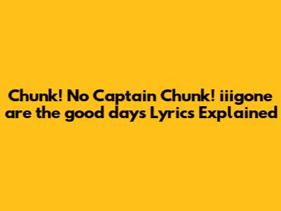 Hey guys! Ever get that feeling when a song just hits you? Like, you hear a new track, and suddenly it's on repeat for days? Well, get ready, because we're diving deep into the lyrics of "iiigone are the good days" by Chunk! No Captain Chunk! This song is an absolute banger, and the lyrics are packed with so much emotion and relatable themes. Whether you're a long-time fan or just stumbled upon this gem, stick around as we break down what makes this song so special and why it's probably stuck in your head right now.