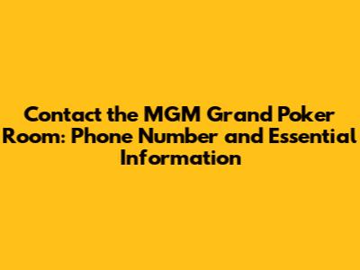 Contact The MGM Grand Poker Room: Phone & Info