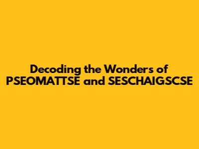 Decoding The Wonders Of PSEOMATTSE And SESCHAIGSCSE