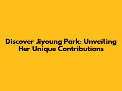 Discover Jiyoung Park: Unveiling Her Unique Contributions