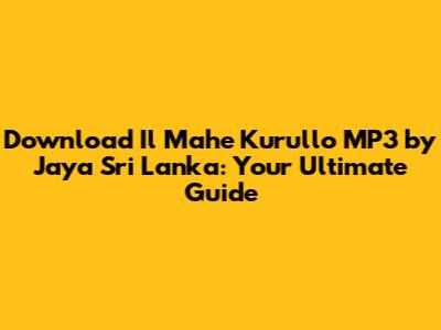 Hey music lovers! Are you searching for the 'Il Mahe Kurullo' MP3 download by Jaya Sri Lanka? You've come to the right place! This comprehensive guide will walk you through everything you need to know about finding and enjoying this popular Sri Lankan track. We'll dive into the song's popularity, where to find it legally, and tips for the best listening experience. So, grab your headphones, and let's get started!