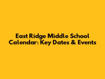 East Ridge Middle School Calendar: Key Dates & Events