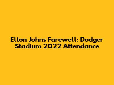Hey music lovers! Let's dive into something super cool: Elton John's epic farewell performances at Dodger Stadium in 2022. I mean, seriously, what a moment! The legendary musician chose this iconic venue for his final US shows, and the attendance numbers? Oh boy, they were massive! We're talking about a historic event, a true celebration of a music icon's career. This wasn't just a concert; it was a cultural phenomenon, a chance to witness history in the making. So, grab your virtual tickets, and let's explore the buzz, the crowds, and the sheer magic of those unforgettable nights. We'll break down the attendance figures, discuss the impact, and relive the memories of Elton's spectacular send-off. Ready to roll? Let's get this party started, guys!