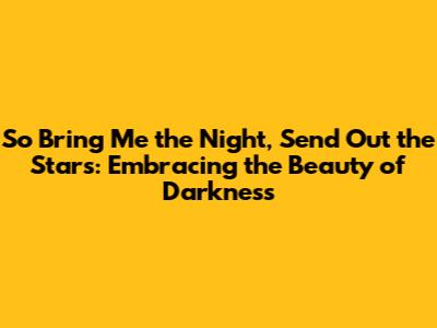 So, the next time you find yourself yearning for something more, remember the simple yet profound words: "So bring me the night, send out the stars." Embrace the darkness, embrace the stars, and embrace the magic that unfolds when the world quiets down and the universe reveals its secrets. The night is a time for reflection, creativity, and connection. It's a time to escape the hustle and bustle of daily life and immerse yourself in the beauty and wonder of the cosmos. By embracing the night, you can unlock your inner potential, find peace and solace, and connect with something larger than yourself. So, go ahead, step into the darkness, and let the stars guide your way. You might be surprised at what you discover.