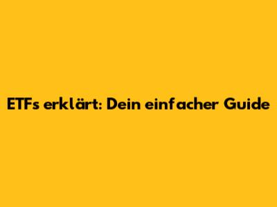 ETFs Erklärt: Dein Einfacher Guide