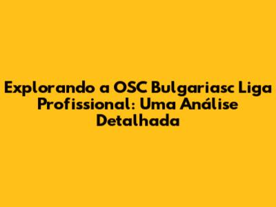 Explorando A OSC Bulgariasc Liga Profissional: Uma Análise Detalhada
