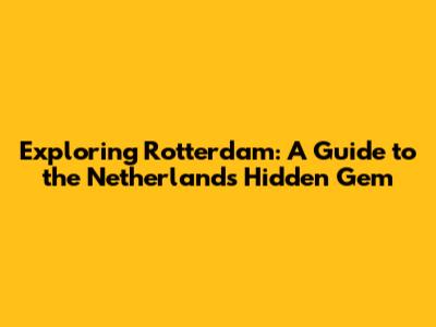 Exploring Rotterdam: A Guide To The Netherlands' Hidden Gem