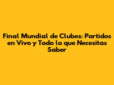 Final Mundial De Clubes: Partidos En Vivo Y Todo Lo Que Necesitas Saber