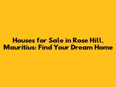 Hey guys! Are you dreaming of owning a house in the beautiful Rose Hill, Mauritius? You've come to the right place! Rose Hill is a vibrant town with a rich history and a promising future, making it an ideal location to settle down. In this comprehensive guide, we'll explore everything you need to know about finding houses for sale in Rose Hill, Mauritius, so you can make an informed decision and snag your perfect property. Let's dive in!