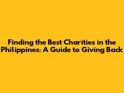 Finding The Best Charities In The Philippines