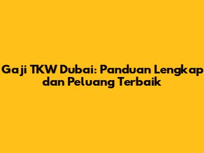 Gaji TKW Dubai: Panduan Lengkap Dan Peluang Terbaik
