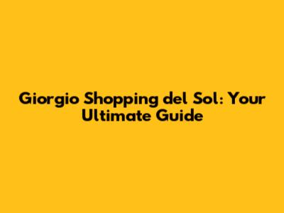Hey guys! Are you ready to dive into the vibrant world of Giorgio Shopping del Sol? If you're planning a trip or just curious about what this shopping destination has to offer, you've come to the right place. Let's get started and explore everything you need to know about making the most of your shopping experience here!