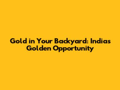 Gold In Your Backyard: India's Golden Opportunity