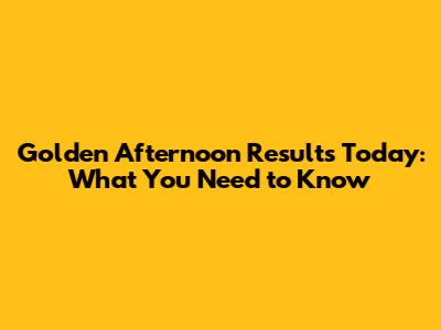 Golden Afternoon Results Today: What You Need To Know