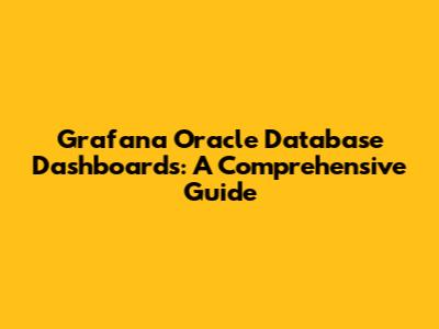 Grafana Oracle Database Dashboards: A Comprehensive Guide