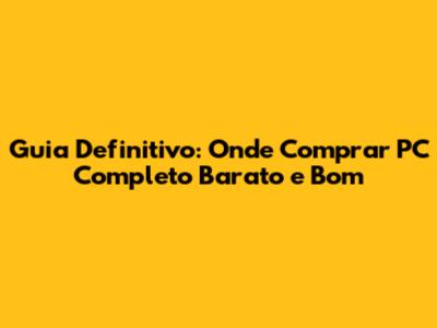 Guia Definitivo: Onde Comprar PC Completo Barato E Bom