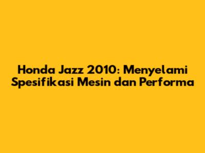 Memahami Mesin Honda Jazz 2010: Berapa Kapasitasnya?