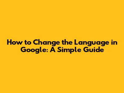 How To Change The Language In Google: A Simple Guide