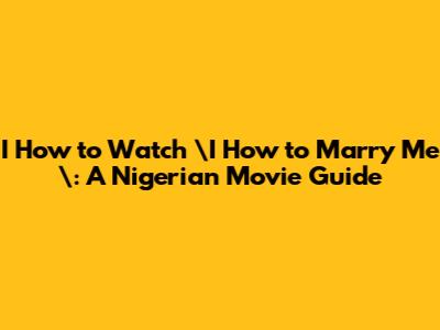 How To Watch I How To Marry Me: A Nigerian Movie Guide