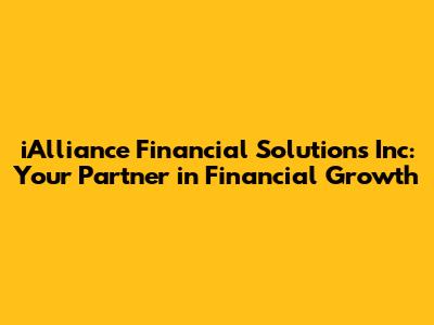 Hey everyone! Are you looking for ways to manage your finances better and secure your financial future? If so, you're in the right place! Today, we're diving deep into iAlliance Financial Solutions Inc. to explore how they can help you achieve your financial goals. We'll break down everything from their services to what makes them stand out, so you can decide if they're the right fit for you. Let's get started, shall we?