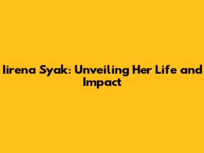 Iirena Syak: A Deep Dive Into Her Life And Work