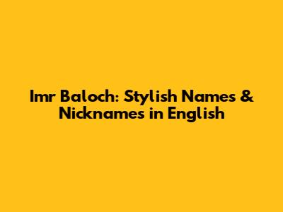 Imr Baloch: Stylish Names & Nicknames In English