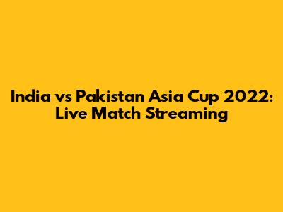 India Vs Pakistan Asia Cup 2022: Live Match Streaming