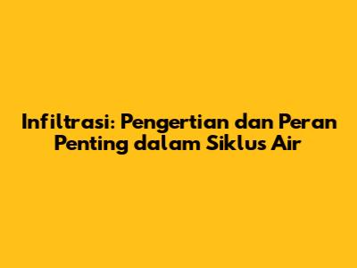Infiltrasi adalah proses masuknya air ke dalam tanah melalui permukaan bumi. Gampangnya, bayangin air hujan yang meresap ke dalam tanah seperti spons. Proses ini menjadi bagian penting dari siklus hidrologi, menghubungkan air di permukaan dengan air tanah. Air yang berhasil berinfiltrasi akan menjadi cadangan air tanah yang sangat berguna bagi kehidupan manusia, hewan, dan tumbuhan. Selain itu, infiltrasi juga membantu menyaring air secara alami, menghilangkan polutan dan kotoran sehingga air tanah menjadi lebih bersih dan aman untuk digunakan.