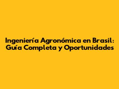 Ingeniería Agronómica En Brasil: Guía Completa Y Oportunidades