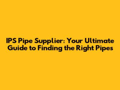 IPS Pipe Supplier: Your Top Guide