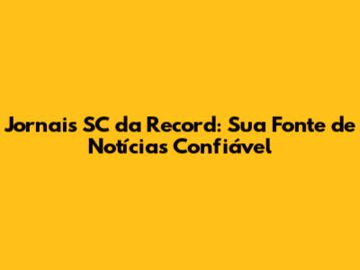 Jornais SC Da Record: Notícias E Cobertura Completa