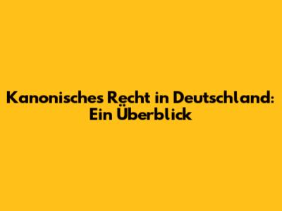 Kanonisches Recht In Deutschland: Ein Überblick