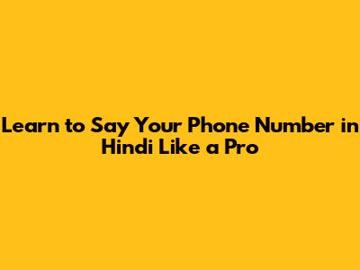 Learn To Say Your Phone Number In Hindi Like A Pro