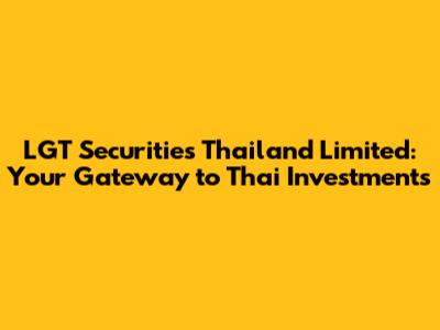 Hey there, finance enthusiasts! Ever heard of LGT Securities Thailand Limited? If you're looking to dive into the exciting world of Thai investments, you've stumbled upon the right article. We're going to break down everything you need to know about this key player in the Thai financial market, from its services to how it can help you build your investment portfolio. Let's get started!