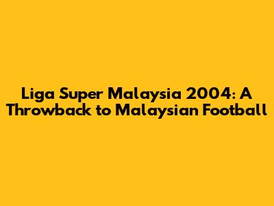 Liga Super Malaysia 2004: A Throwback To Malaysian Football