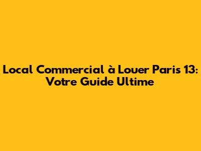 Local Commercial À Louer Paris 13: Votre Guide Ultime