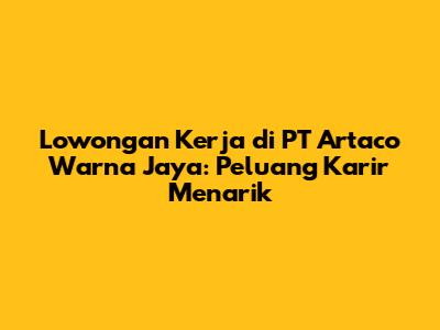 Lowongan kerja di PT Artaco Warna Jaya menjadi berita hangat bagi para pencari kerja di Indonesia. PT Artaco Warna Jaya, sebagai perusahaan yang bergerak di bidang manufaktur cat dan pelapis, kerap membuka kesempatan karir yang menarik. Bagi kalian yang sedang mencari pekerjaan, artikel ini akan membahas secara mendalam mengenai lowongan kerja terbaru di PT Artaco Warna Jaya, persyaratan yang dibutuhkan, serta tips untuk melamar.