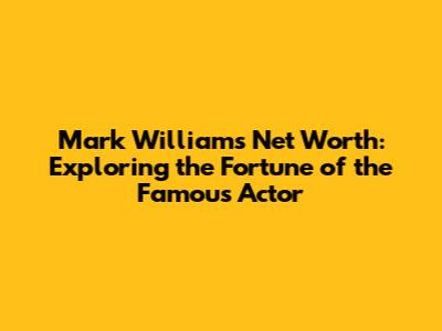 Mark Williams Net Worth: Exploring The Fortune Of The Famous Actor
