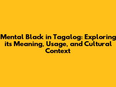Mental Black In Tagalog: Meaning, Usage, And Cultural Context