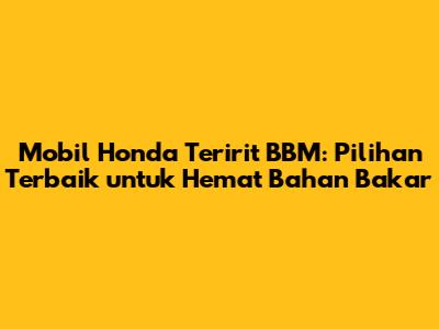 Mobil Honda Teririt BBM: Pilihan Terbaik Untuk Hemat Bahan Bakar