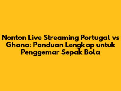 Nonton live streaming Portugal vs Ghana adalah cara terbaik untuk menikmati pertandingan sepak bola yang seru ini. Sebagai penggemar sepak bola, pasti kamu tidak ingin melewatkan aksi dari bintang-bintang lapangan hijau. Artikel ini akan memberikan panduan lengkap tentang cara menonton live streaming Portugal vs Ghana, mulai dari informasi jadwal, platform streaming, hingga tips agar pengalaman menontonmu semakin menyenangkan. Jadi, siap-siap untuk mendukung tim favoritmu dan merasakan euforia pertandingan!