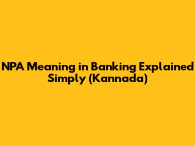 NPA Meaning In Banking Explained Simply (Kannada)