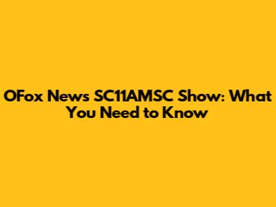 OFox News SC11AMSC Show: What You Need To Know