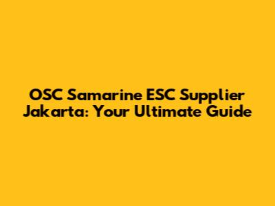 OSC Samarine ESC Supplier In Jakarta: Your Ultimate Guide